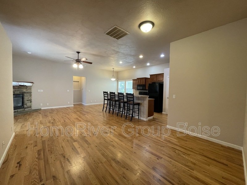 This gorgeous home is loaded with upgrades that include hardwood floors, vaulted ceilings, a gas range, and tile accents through the kitchen and baths. With an open concept design and split bedroom floor plan, this home is spacious and comfortable. The primary enclosure offers dual-sink vanities, a walk-in closet, and plenty of storage space! The secondary bedrooms are spacious and boast large closets. Enjoy the views of the lawn from your covered patio as the HOA provides lawn care! *6 month lease